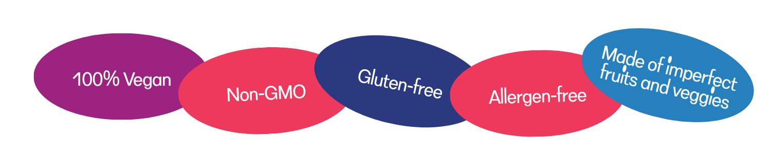 We did it. We turned problems into candy, and now you can eat them. Each 1oz of FAVES contains one serving of fruits + veggies. Now that’s stealth nutrition!